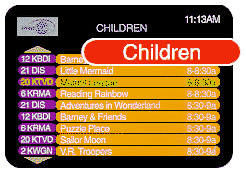- To access listings by category, highlight the bar titled Movies, Sports or