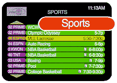 - To access listings by category, highlight the bar titled Movies, Sports or